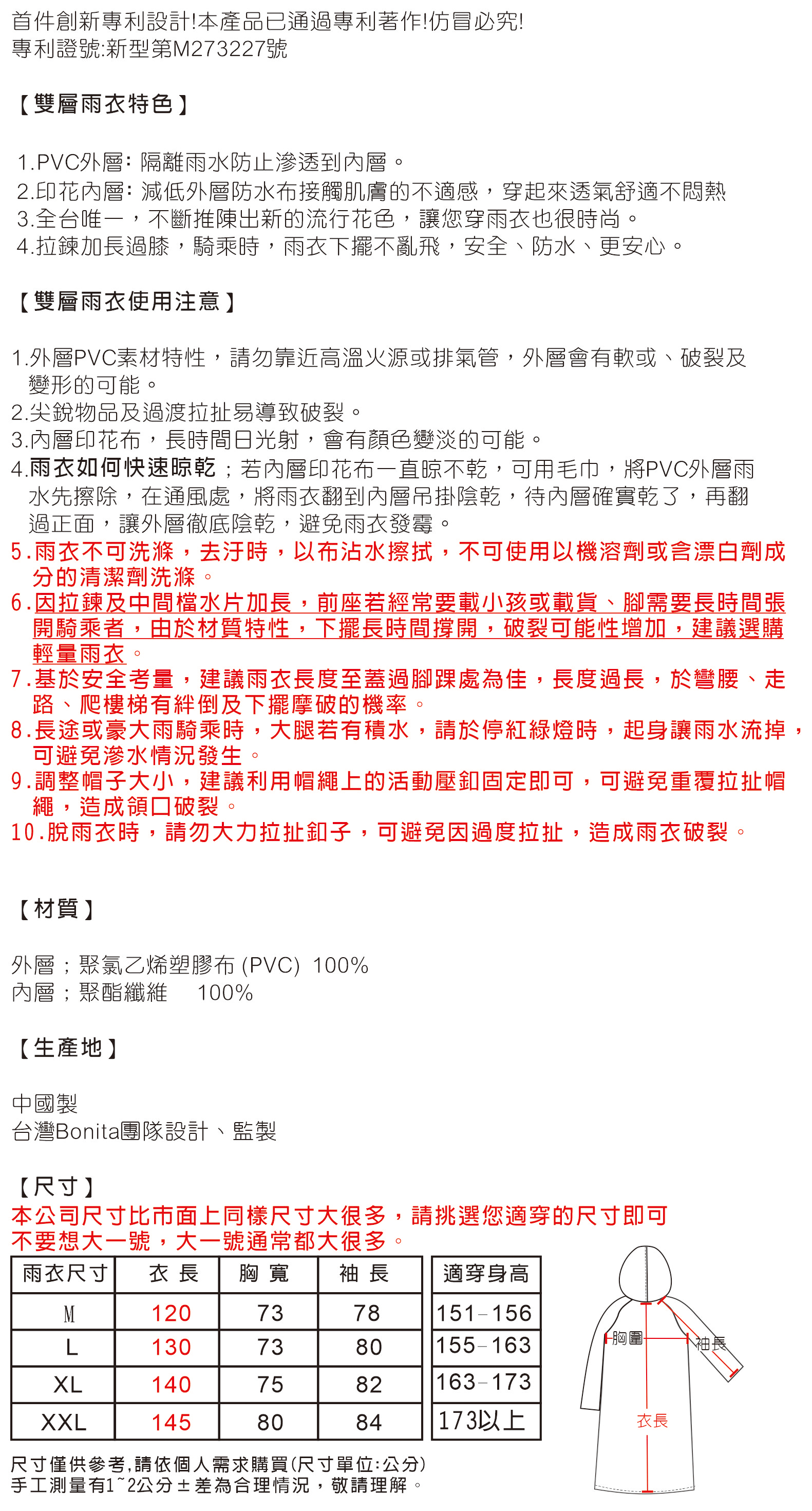 【Bonita】復古潮電雙層雨衣(時尚/防水/不悶熱) 5001-53 天藍色