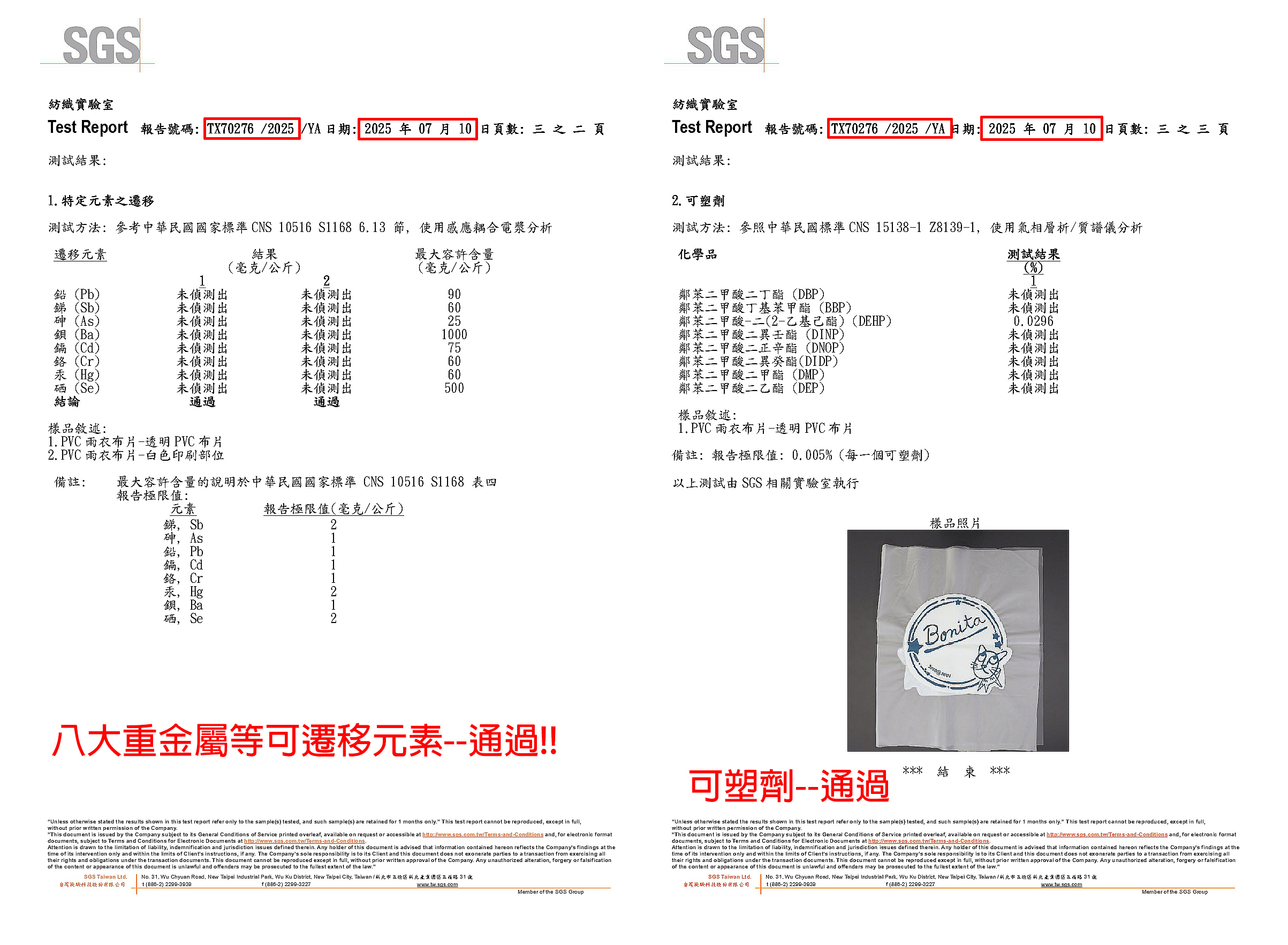 5.SGS檢驗通過,外層不含塑化劑,不含八大重金屬等遷移元素。