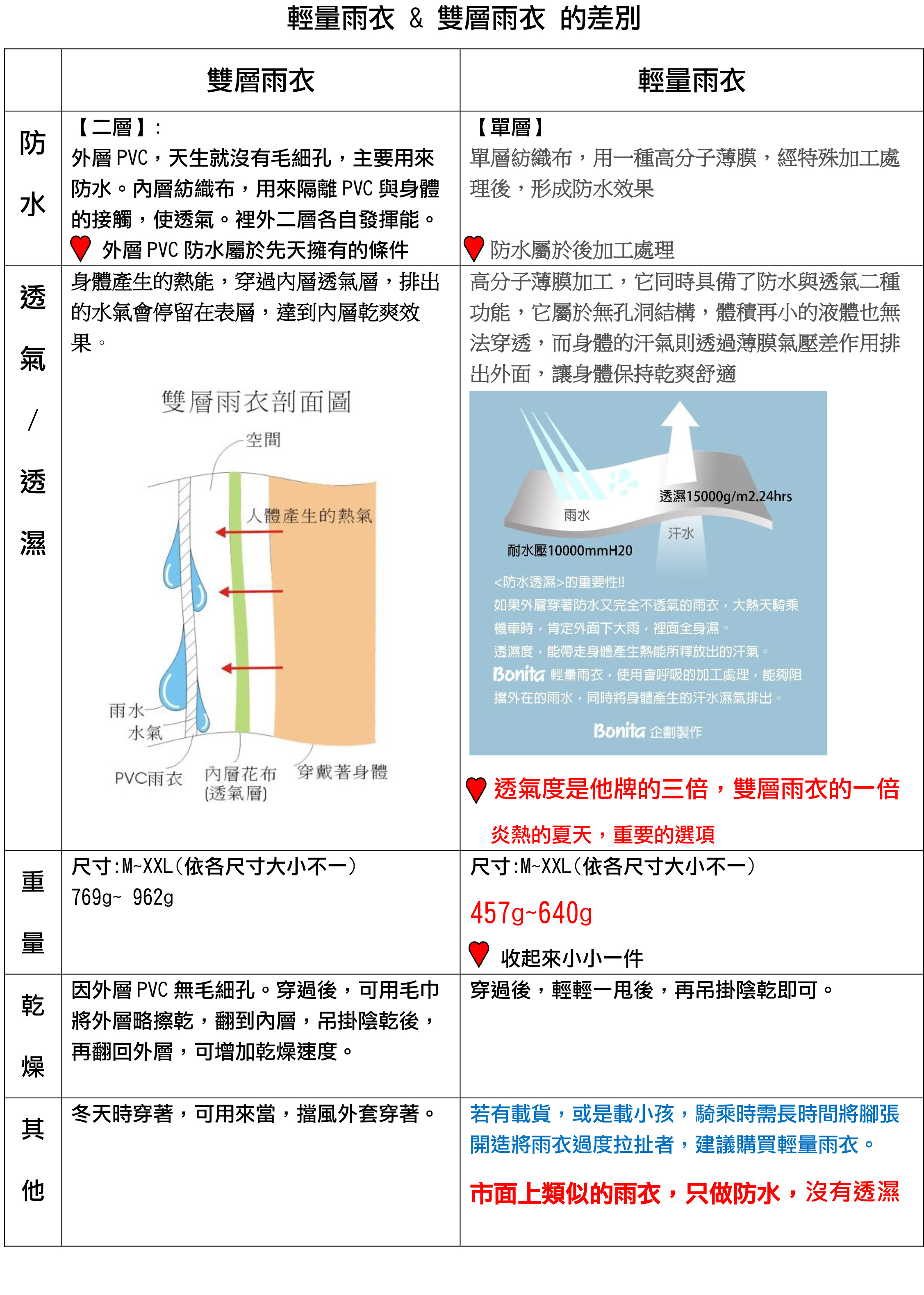 2.內層:減低防水布料接觸肌膚的不適感,穿起來透氣舒適不悶熱。