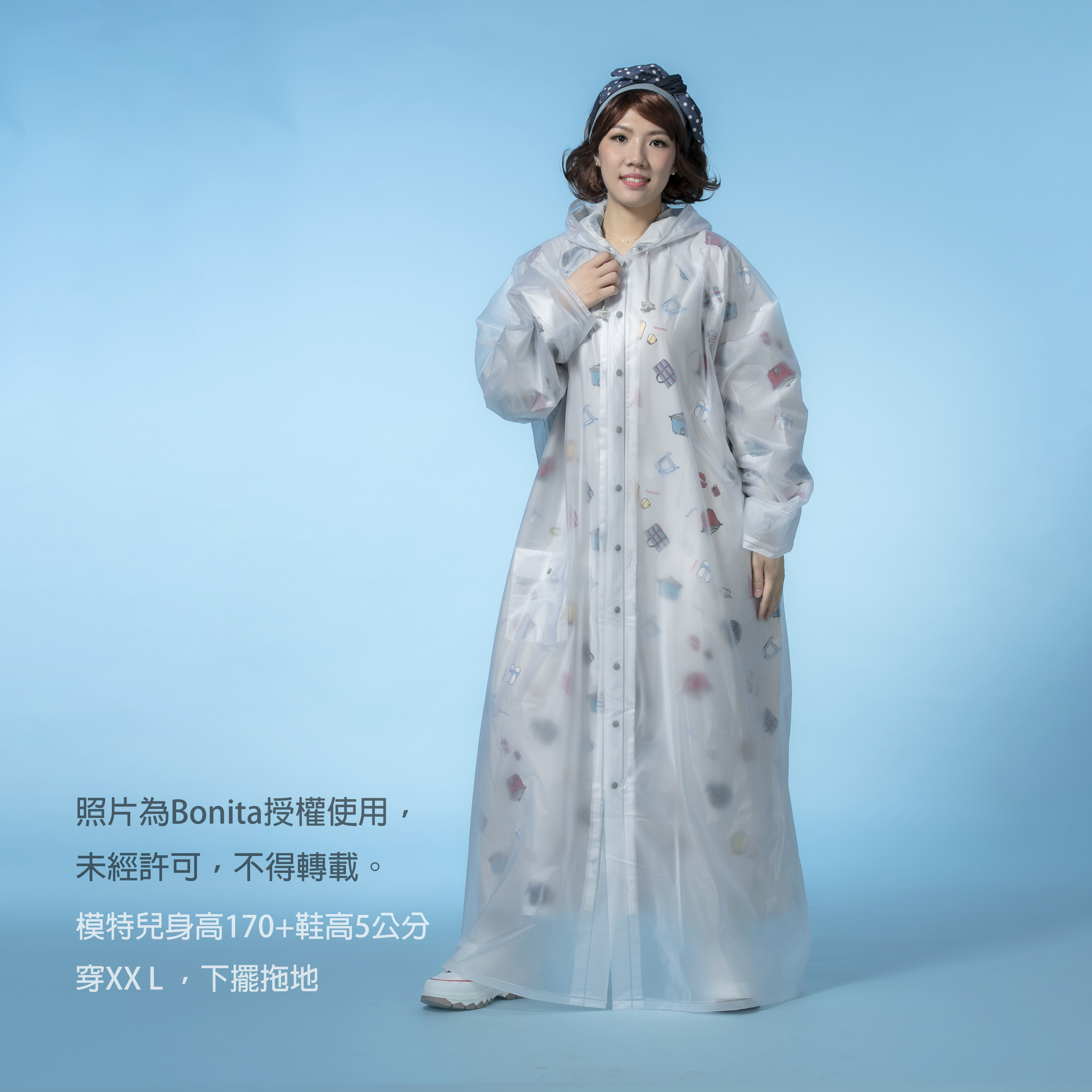 3.流行內層花布,穿雨衣也能很時尚。