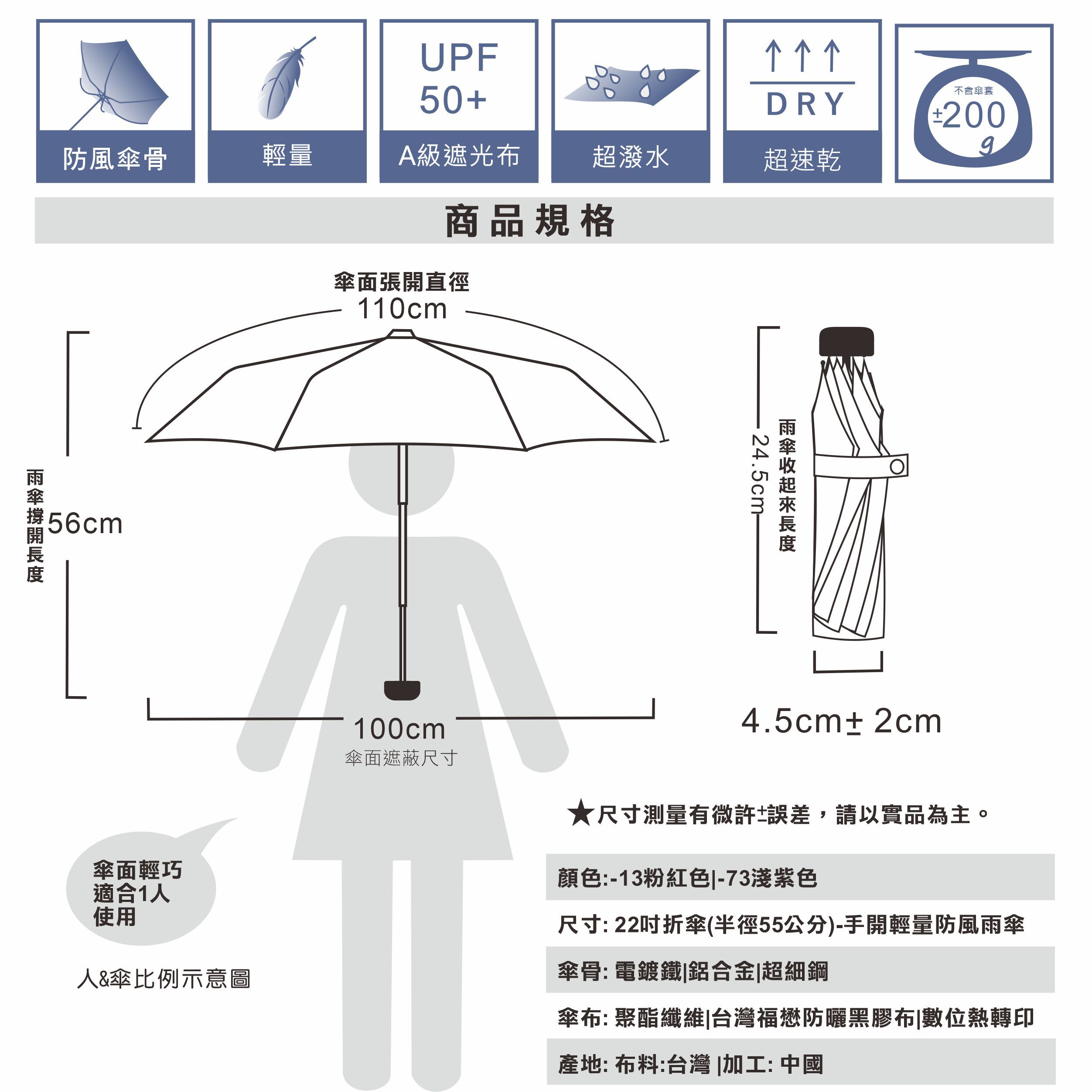 類型 : 22吋三折傘-手開輕量防風晴雨傘