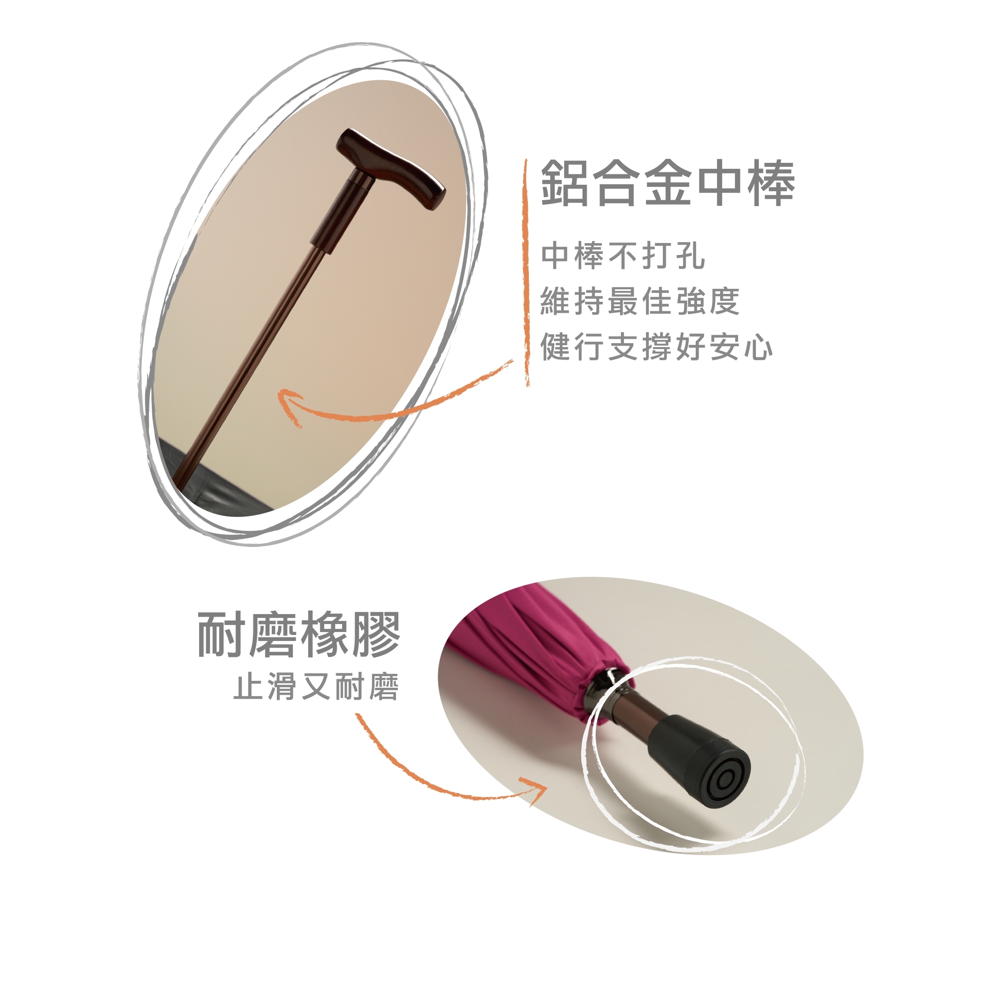 傘骨 : 鋁合金中棒.蓮花型玻纖傘骨.實木傘頭