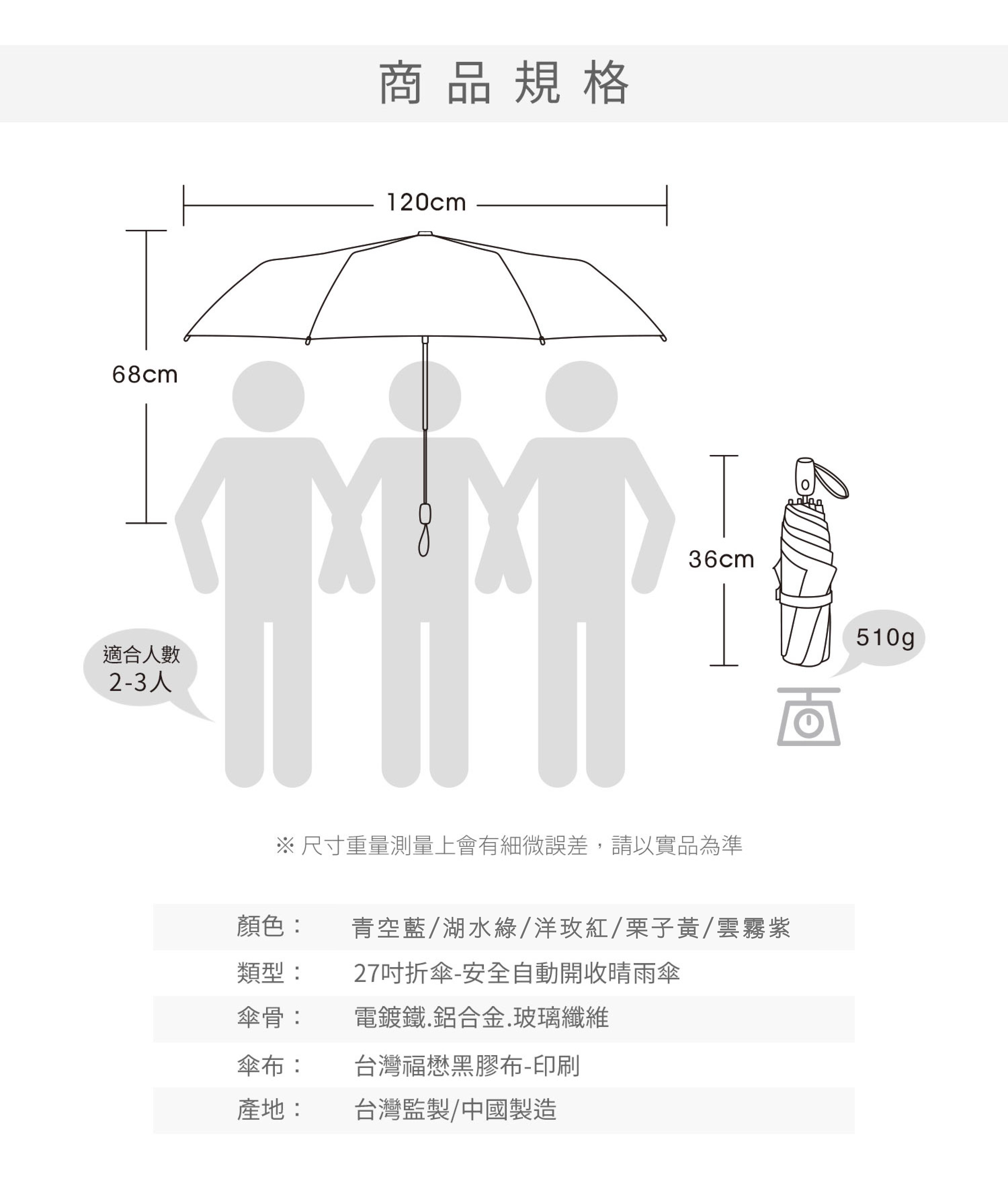 顏色 : 青空藍/湖水綠/洋玫紅/栗子黃/雲霧紫(NEW!)