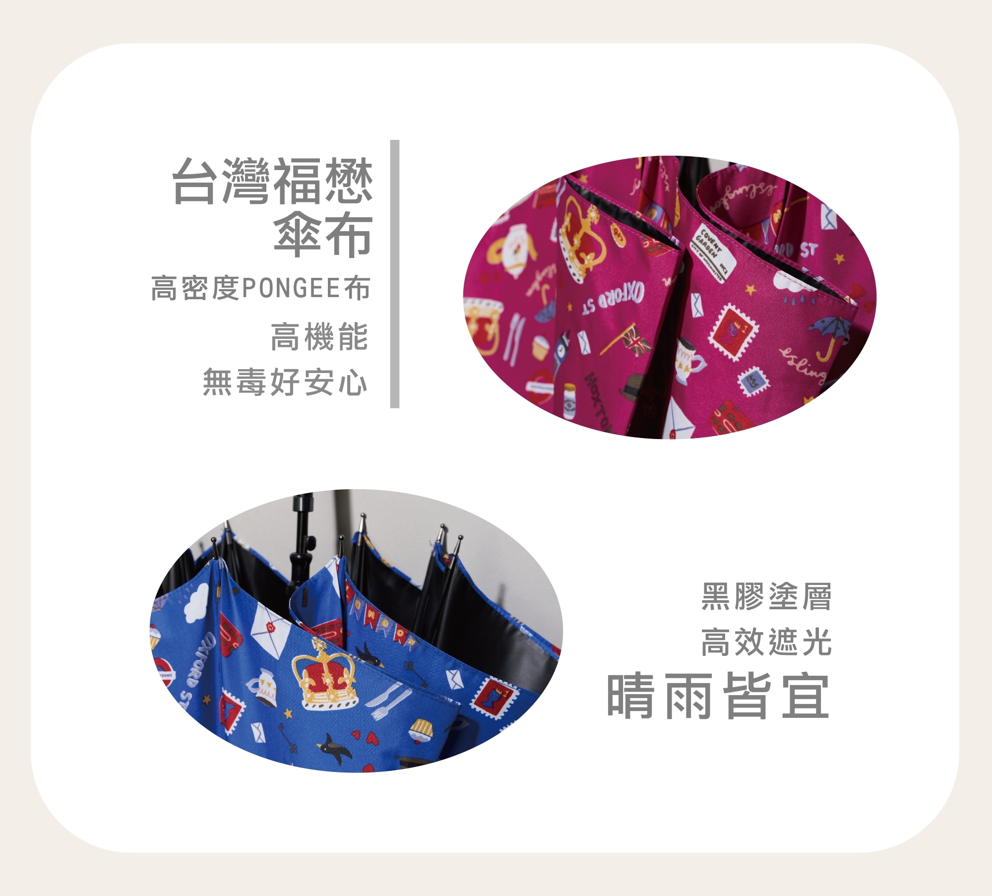 傘布 : 台灣福懋印花黑膠布
