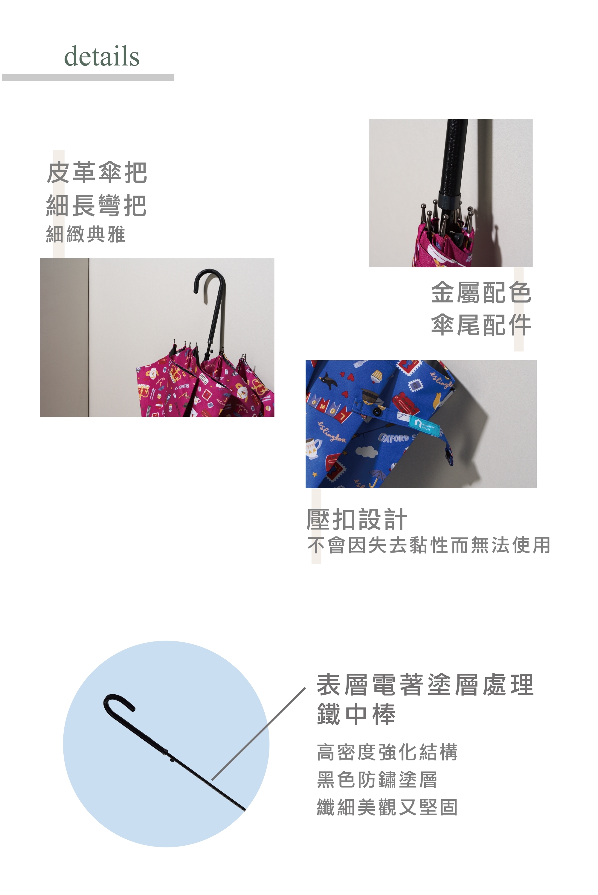 傘骨 : 電著鐵 鋁合金 玻璃纖維