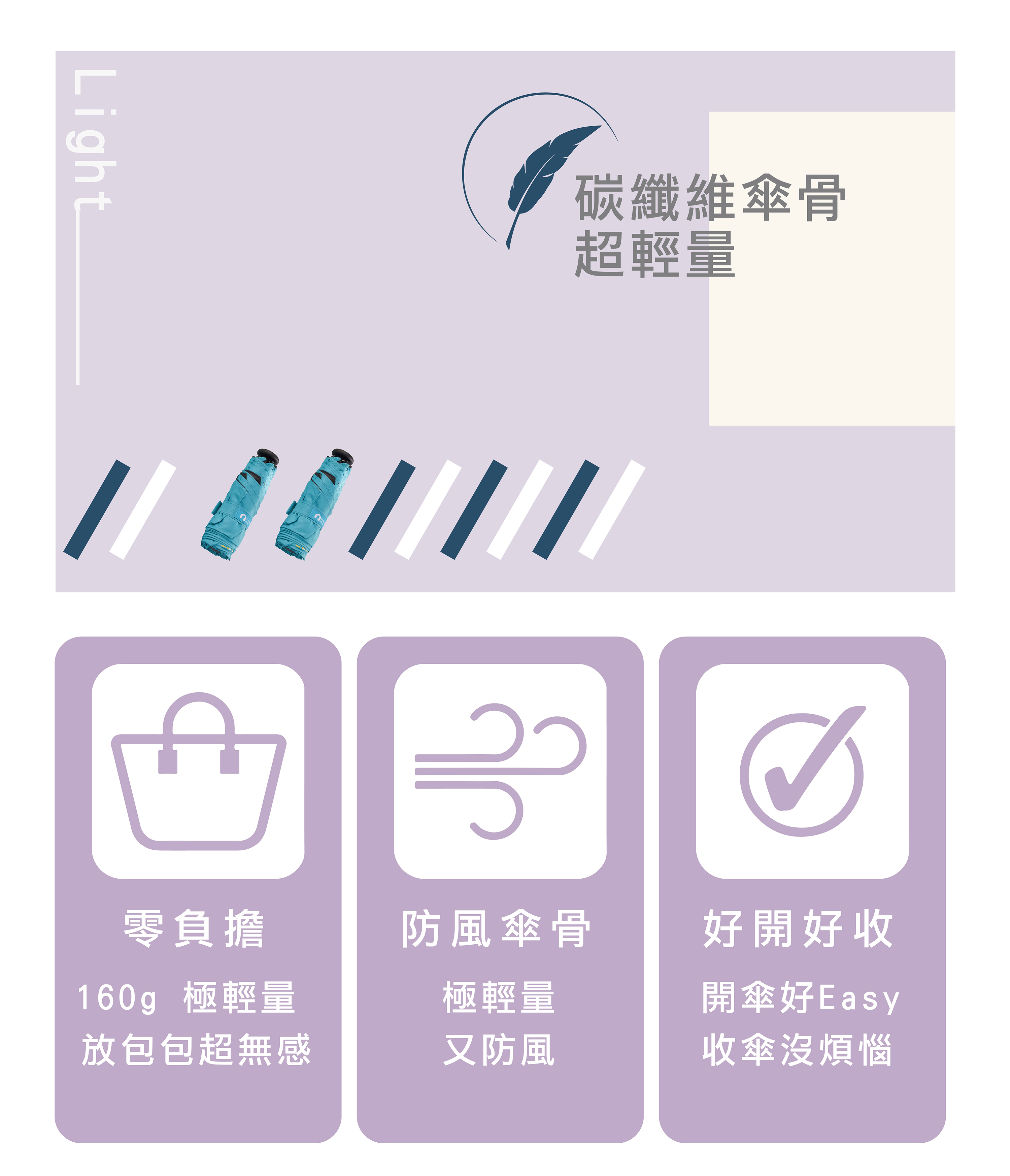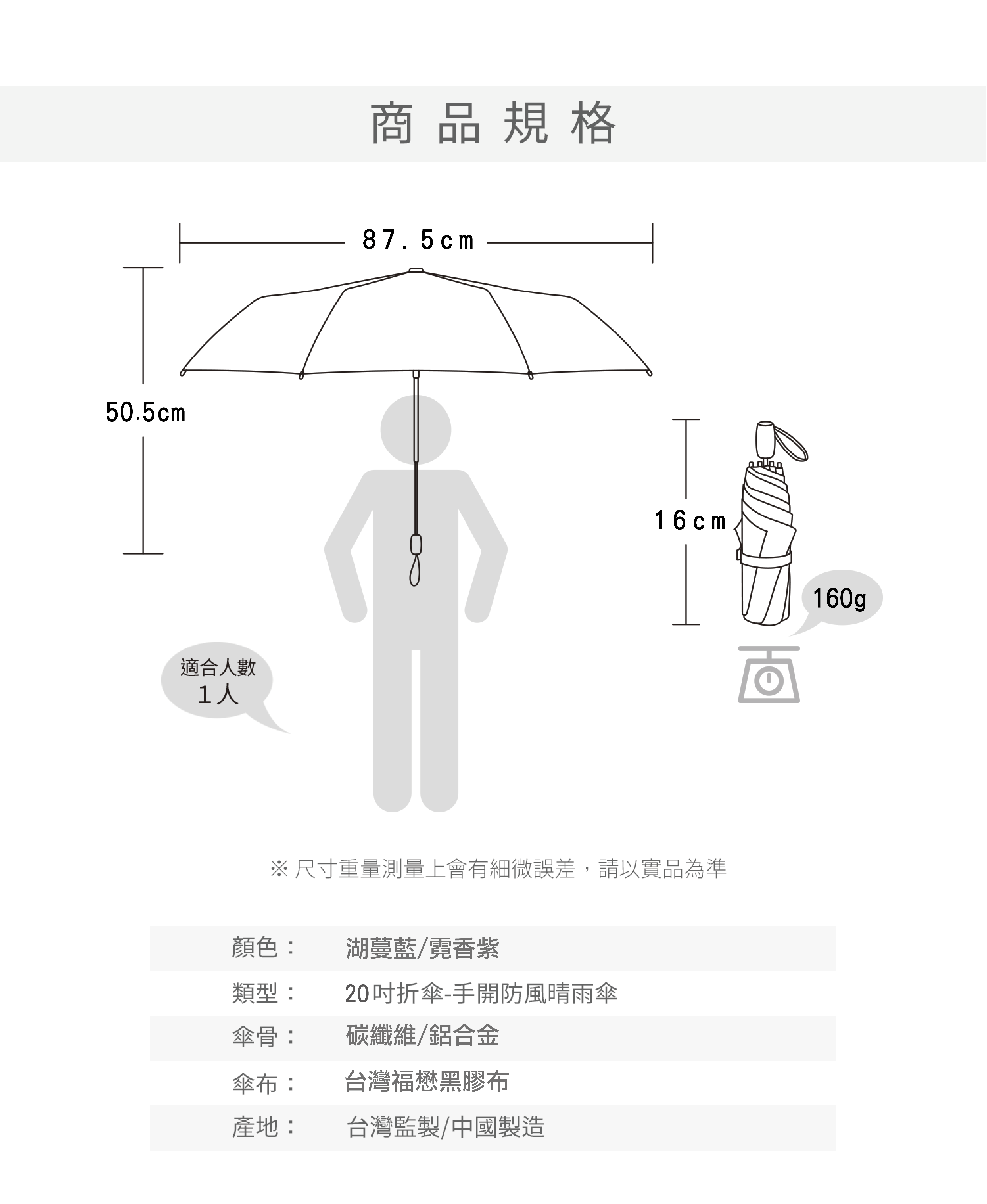 類型 : 20吋折傘-手開五折碳纖防風晴雨傘
