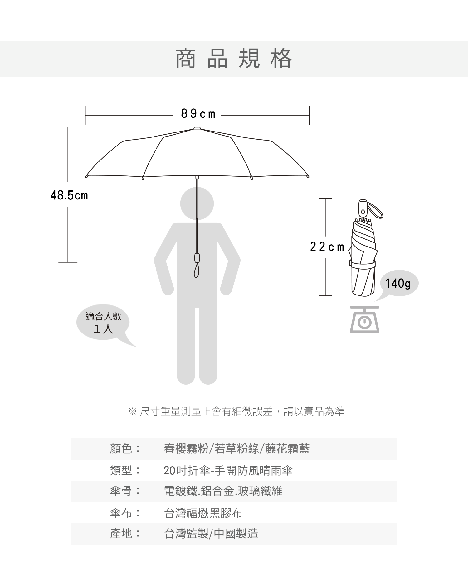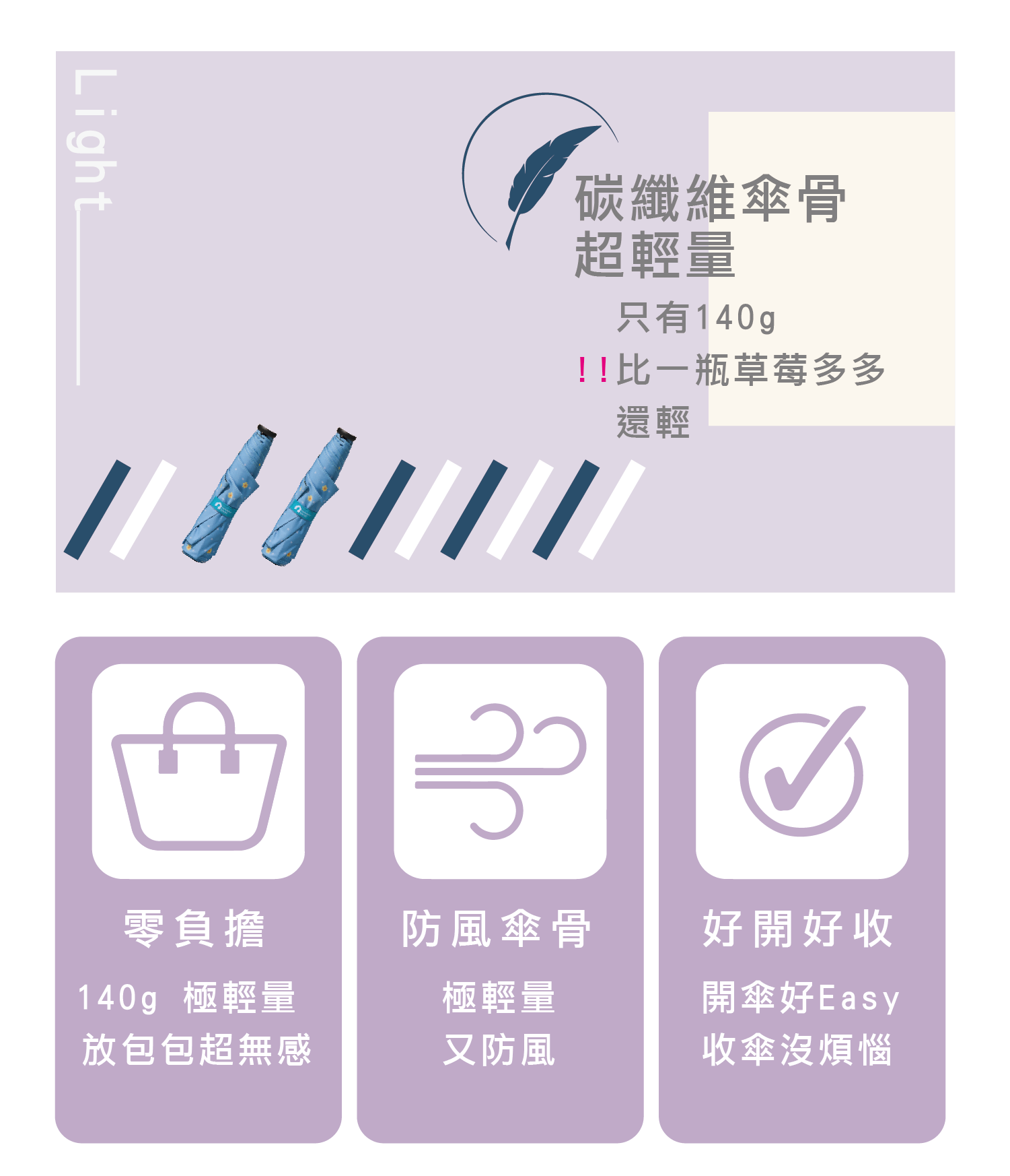 類型 : 20吋折傘-手開極輕碳纖晴雨傘